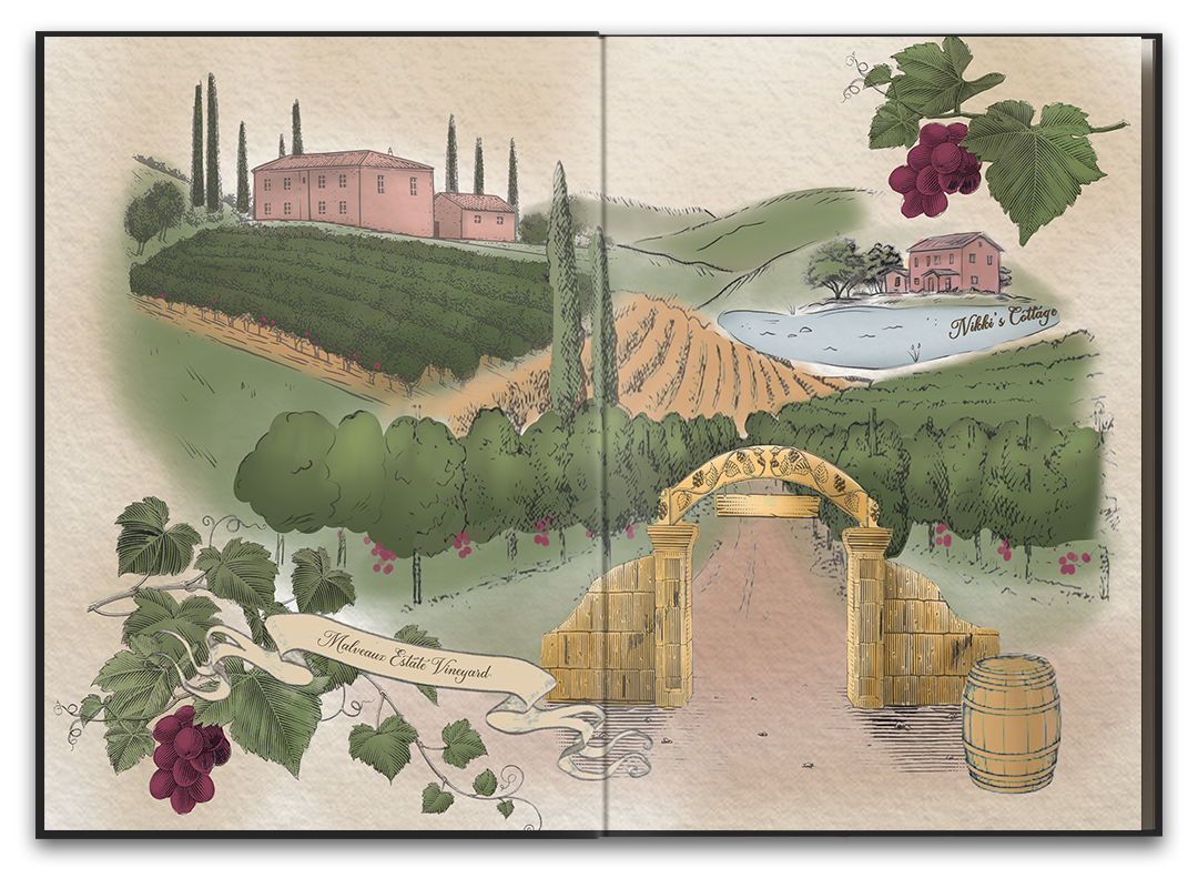 Bound in hardcover with stunning original artwork and a bespoke special-edition dust jacket, this collector’s volume is designed to be both read and treasured. Inside, readers will find elegant vellum pages featuring exclusive illustrations, richly detailed sprayed edges, and a beautifully rendered map of the vineyard and winery that brings Napa Valley vividly to life.